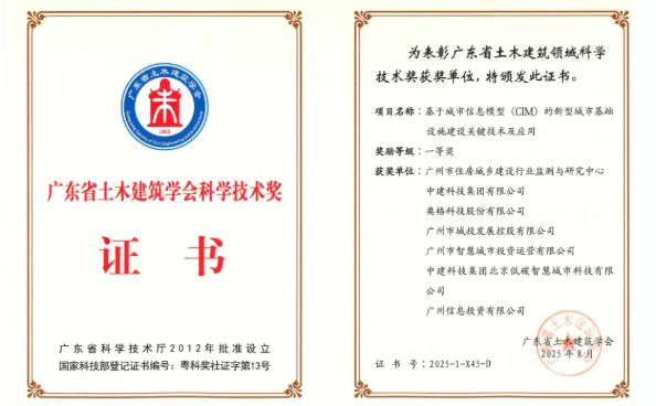 广州城投集团全面贯彻习近平总书记关于城市工作的重要论述,积极推动科技创新,赋能超大城市治理。下属智投公司与市住房城乡建设行业监测与研究中心、中建科技、奥格科技等单位共同完成《基于城市信息模型(CIM)的新型城市基础设施建设关键技术及应用》项目荣获2025年广东省土木建筑学会科学技术奖一等奖。